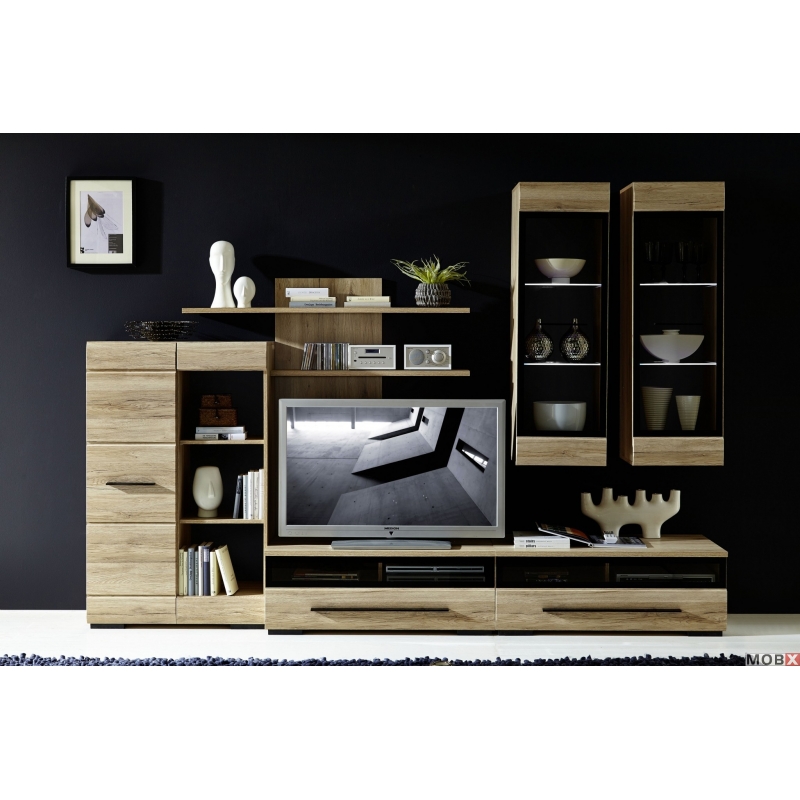 Living modern şi elegant, de înaltă calitate, realizat din PAL melaminat şi MDF, oferă pentru camera de zi un look aparte.