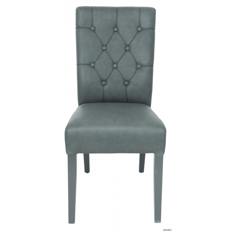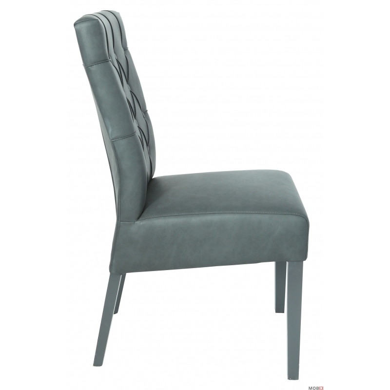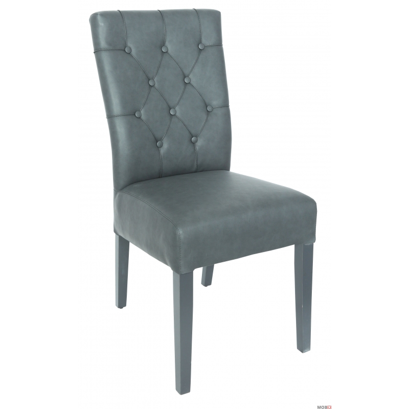 Scaun tapitat realizat din lemn masiv de fag, confortul este asigurat prin folosirea chingilor elastice si a spumei poliuretanice de inalta rezistenta. Produsul este tapitat cu piele artificiala